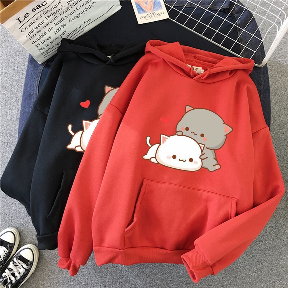 Embrace the cozy charm of the cooler seasons with our adorable Autumn and Winter Ladies Blouse. Featuring a delightful cute cat print, this casual sports hoodie is designed to bring a smile to your face while keeping you warm and stylish.